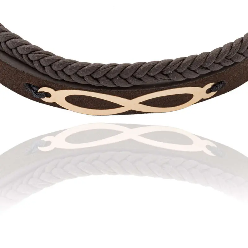 دستبند چرمی طلا مردانه بی نهایت بند قهوه ای